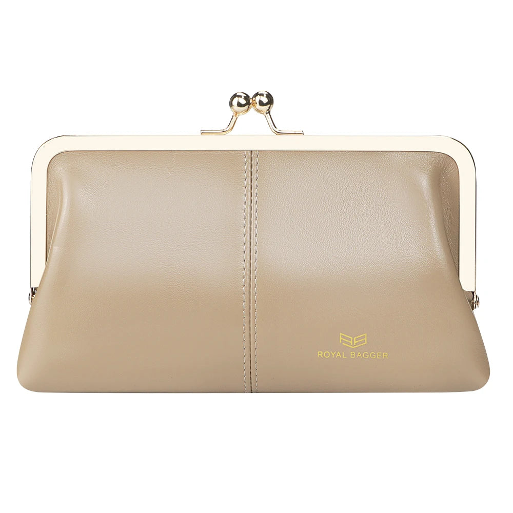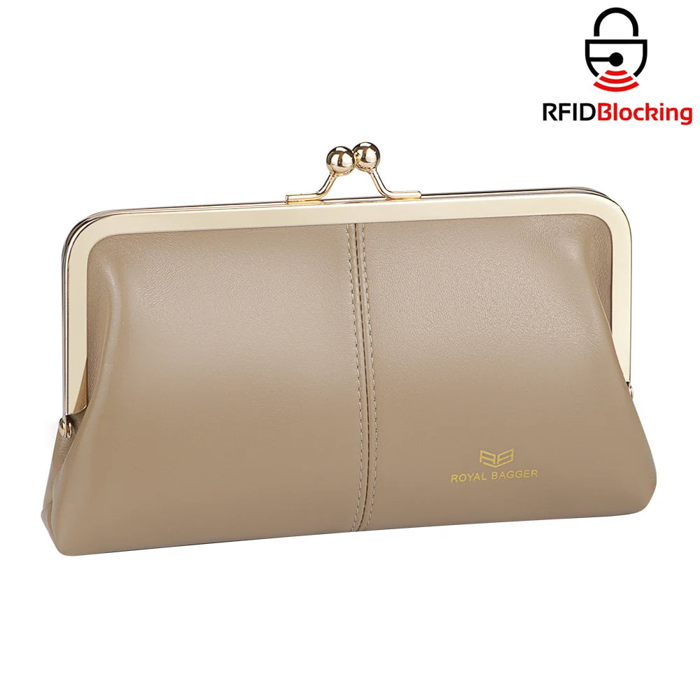 Royal Bagger RFID Genuine Leather Wallet for Women, Kiss Lock Clutch with Multi-Card Slots, Vintage Card Holder Purse 2468