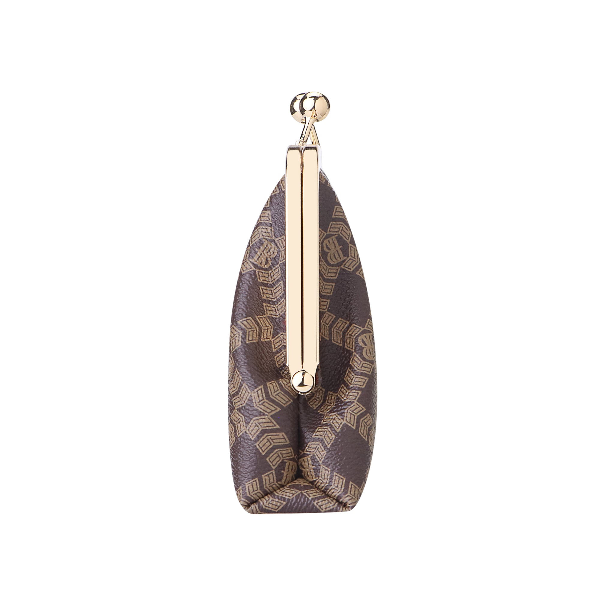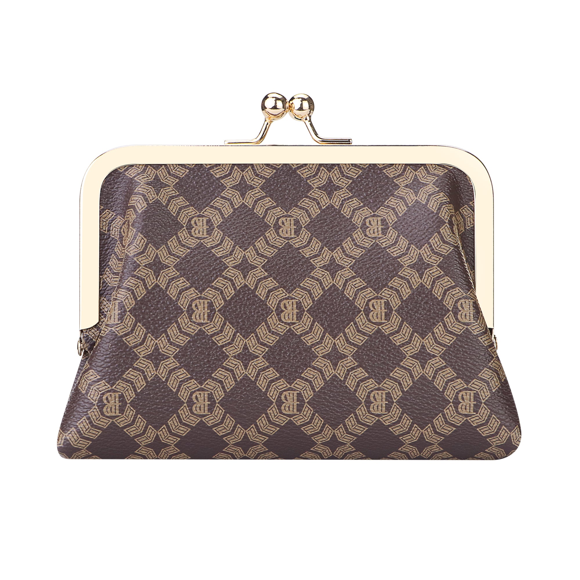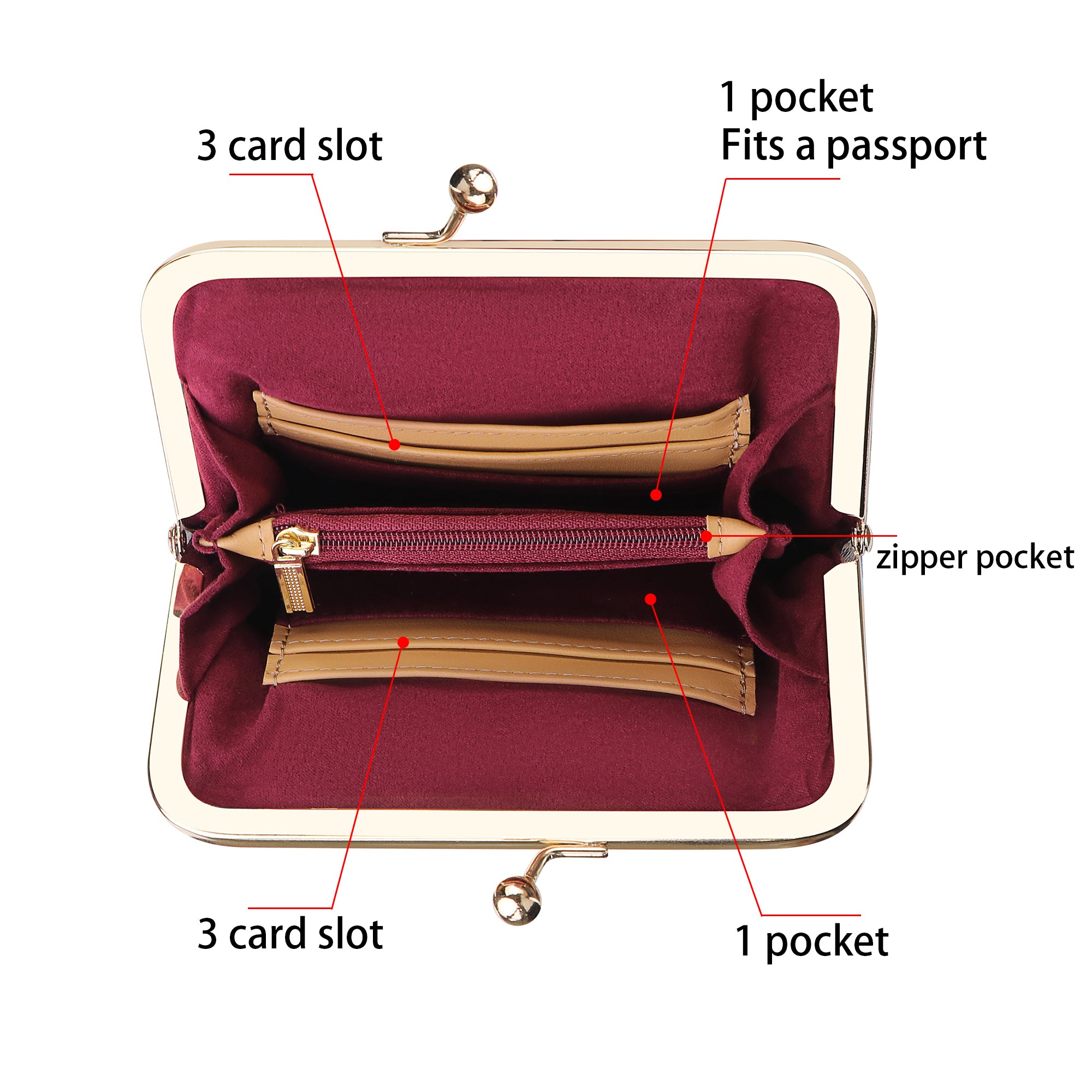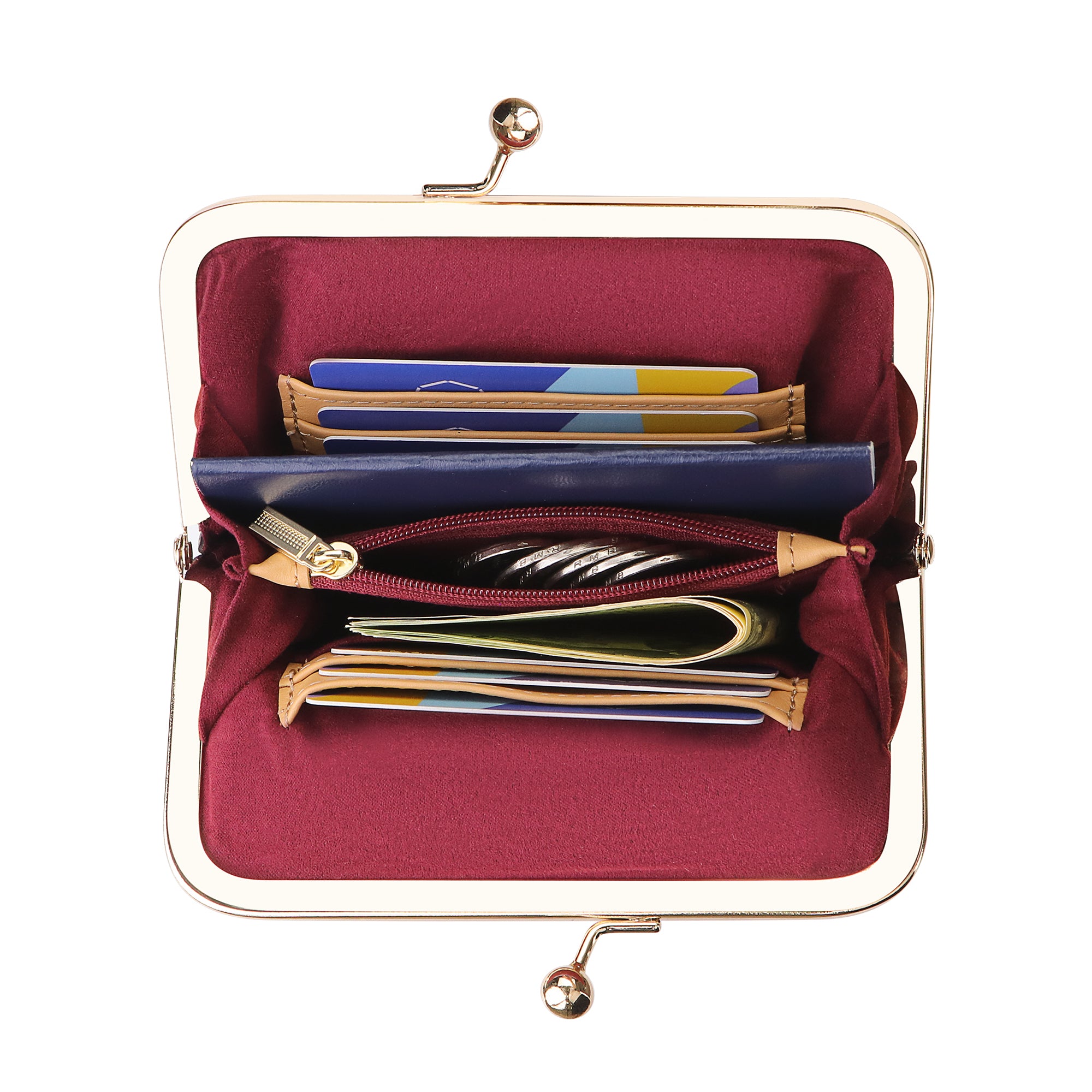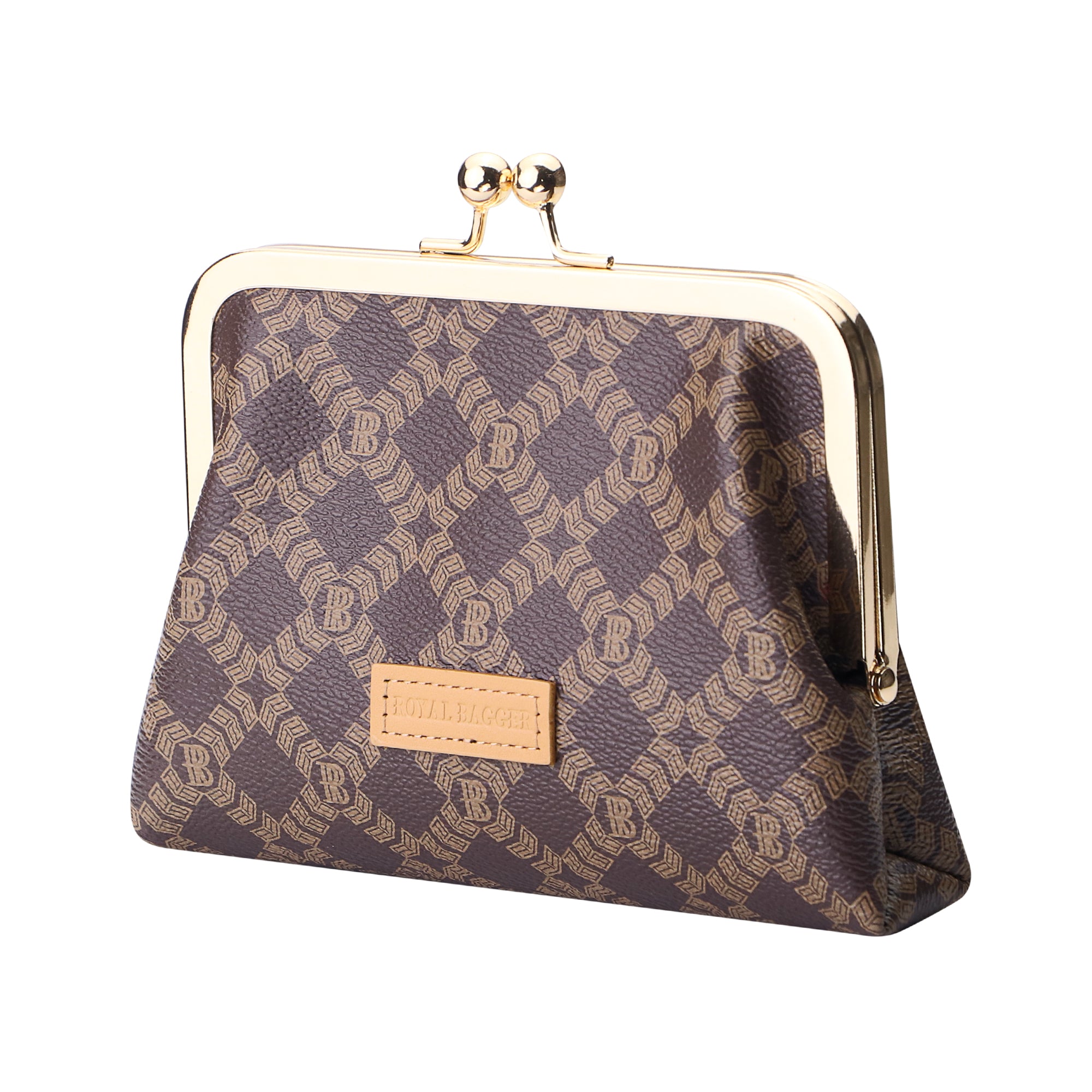 Royal Bagger Women's RFID Card Holder, Kiss Lock Coin Purse, Short Wallet, Signature Coated Canvas & Vegetable-Tanned Cowhide Leather 5120