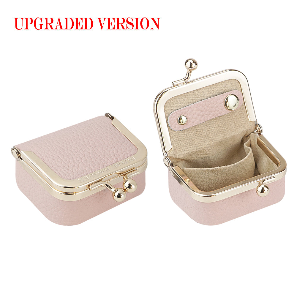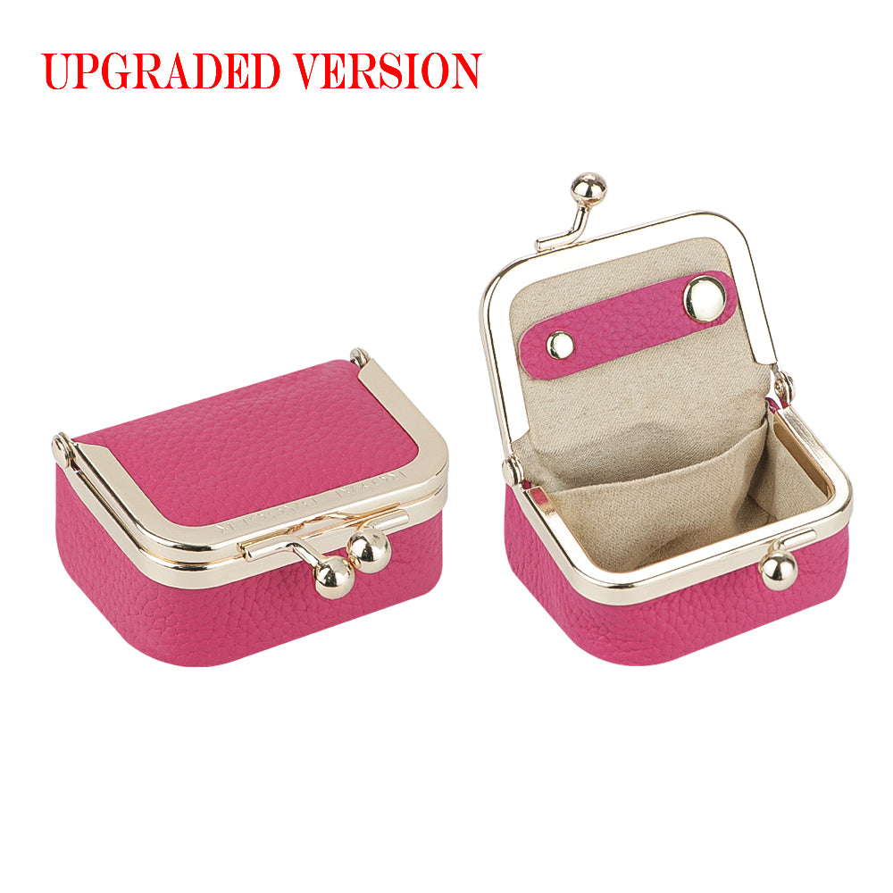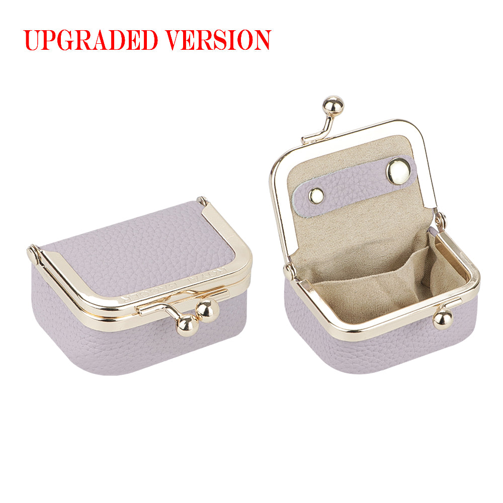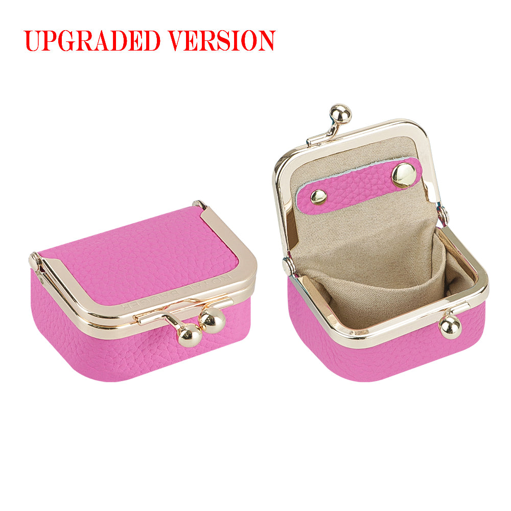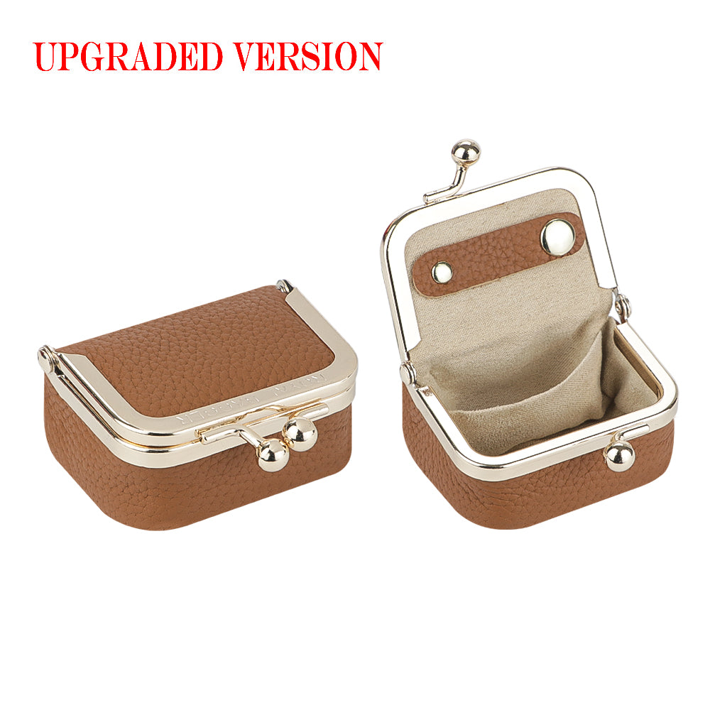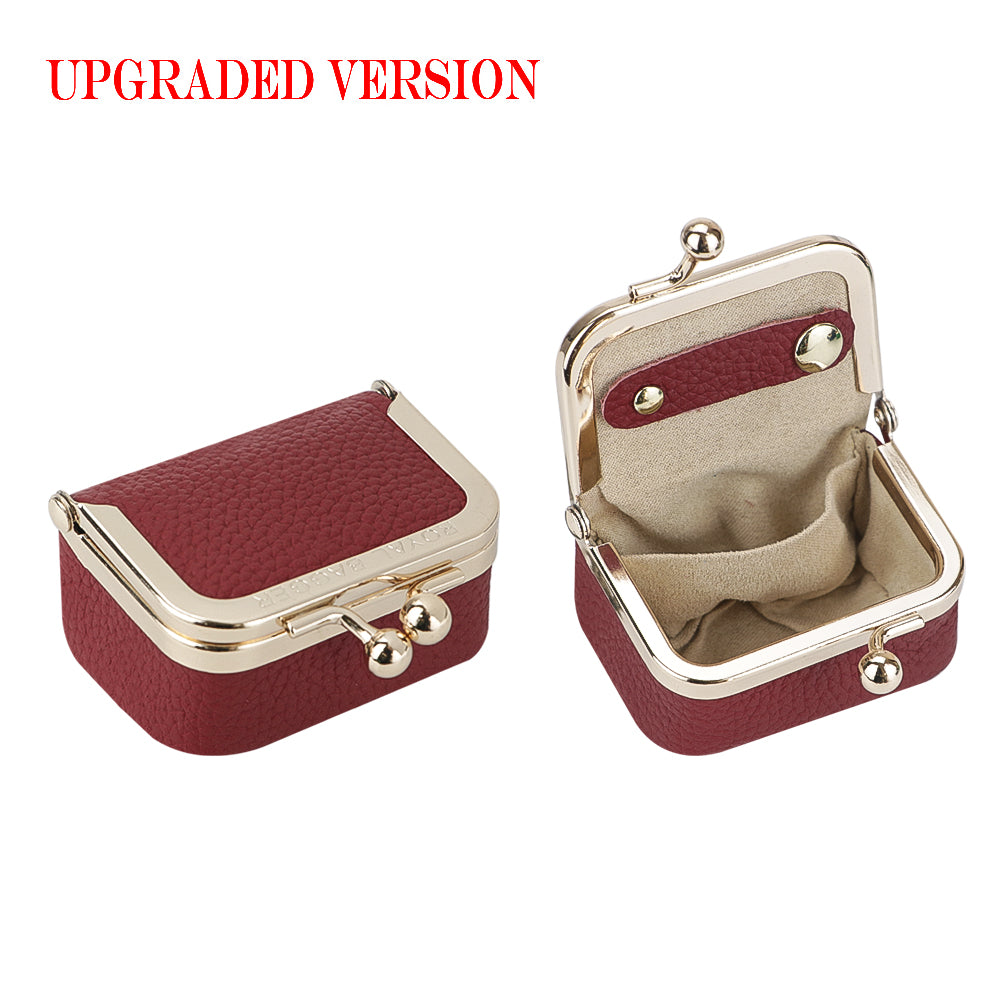 Royal Bagger Genuine Leather Mini Coin Purse, Solid Color Kiss Lock Change Pouch, Casual Style Small Storage Bag for Women 1894