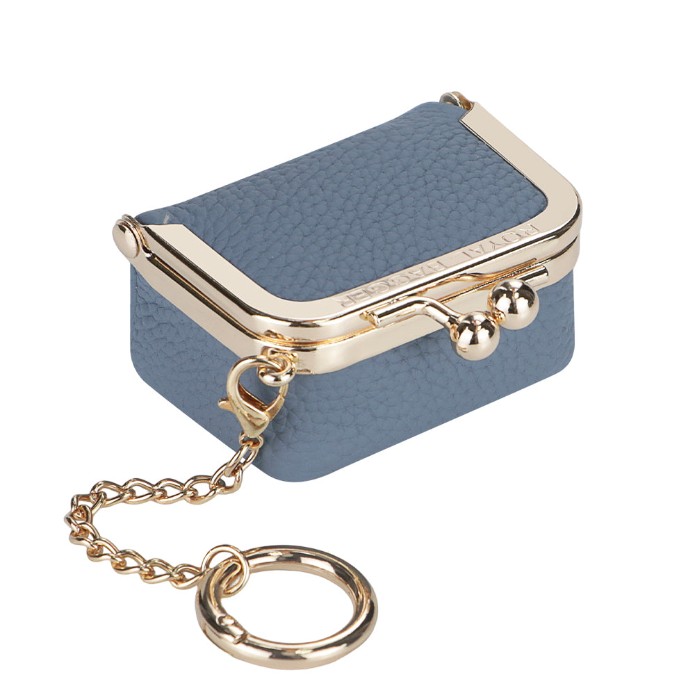 The pouch features a secure and easy-to-use gold metal kiss lock closure. This ensures your items stay safe and organized. The closure is both functional and stylish.