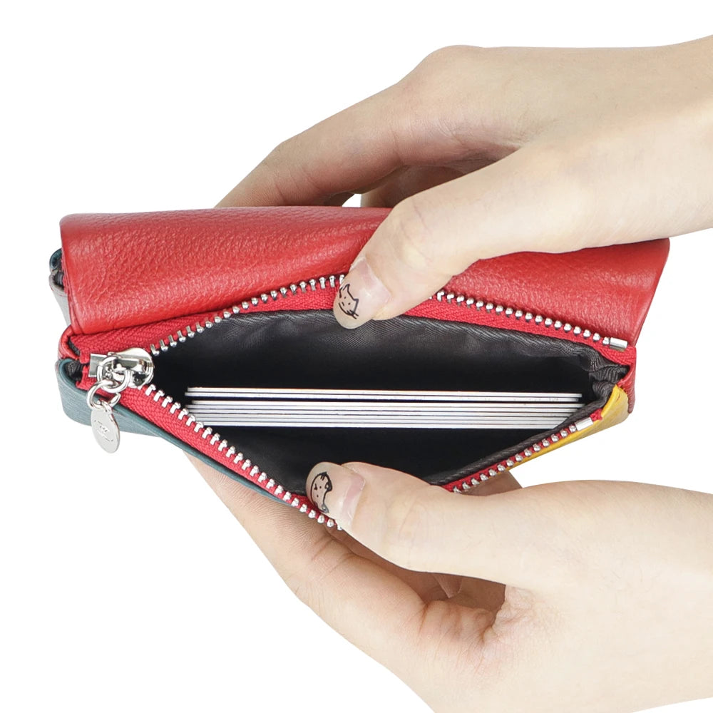 Royal Bagger Color Block RFID Short Wallets Genuine Leather Multi-card Slots Card Holder Trifold Purse Magnetic Opening 2053