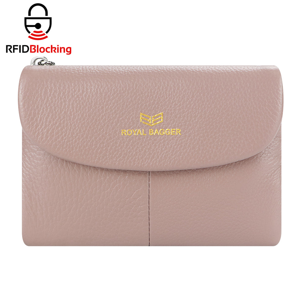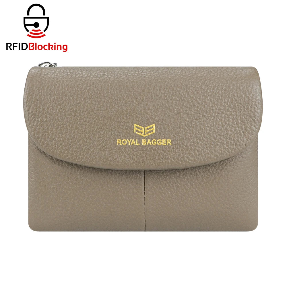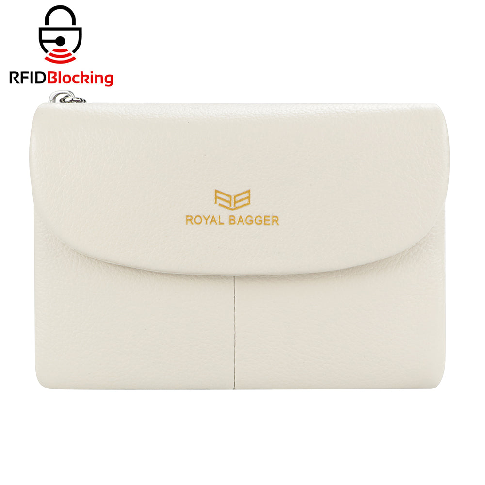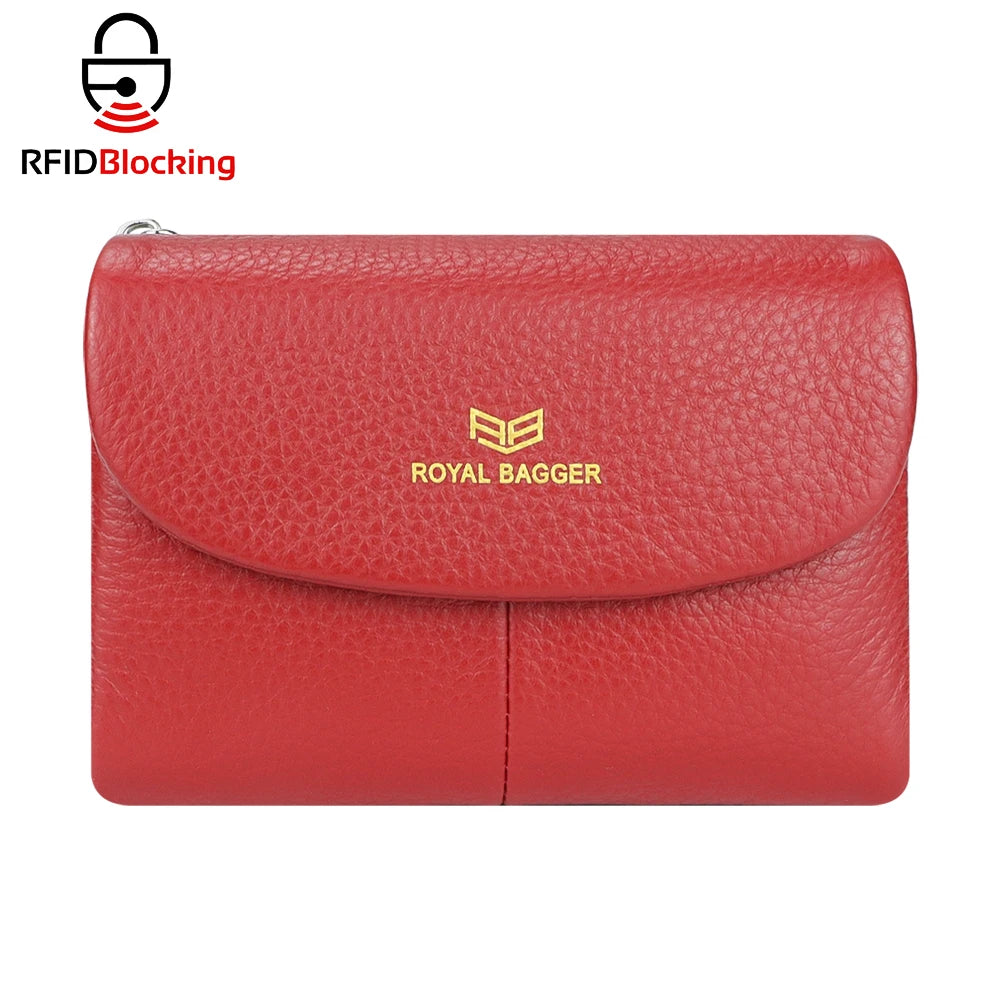 Royal Bagger RFID Blocking Women's Short Wallet Genuine Leather Multi-card Slots Card Holder Trifold Purse Magnetic Opening 2063