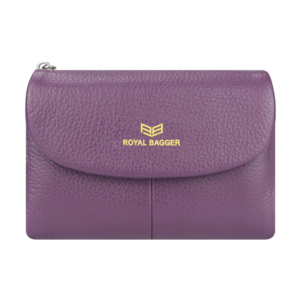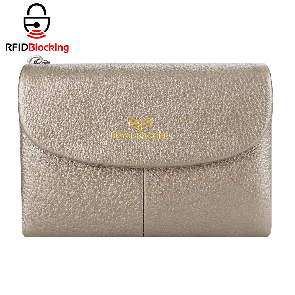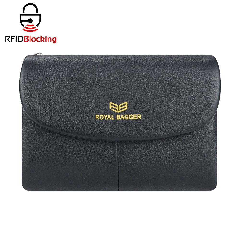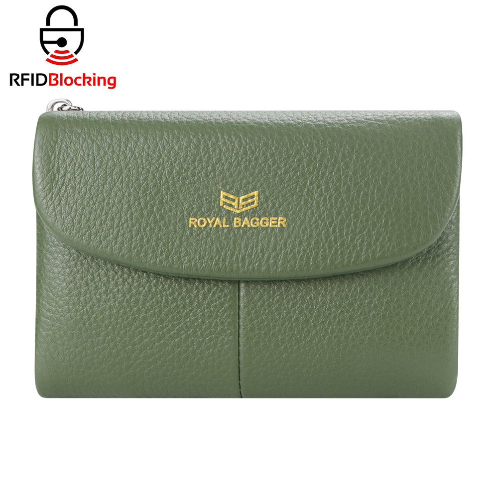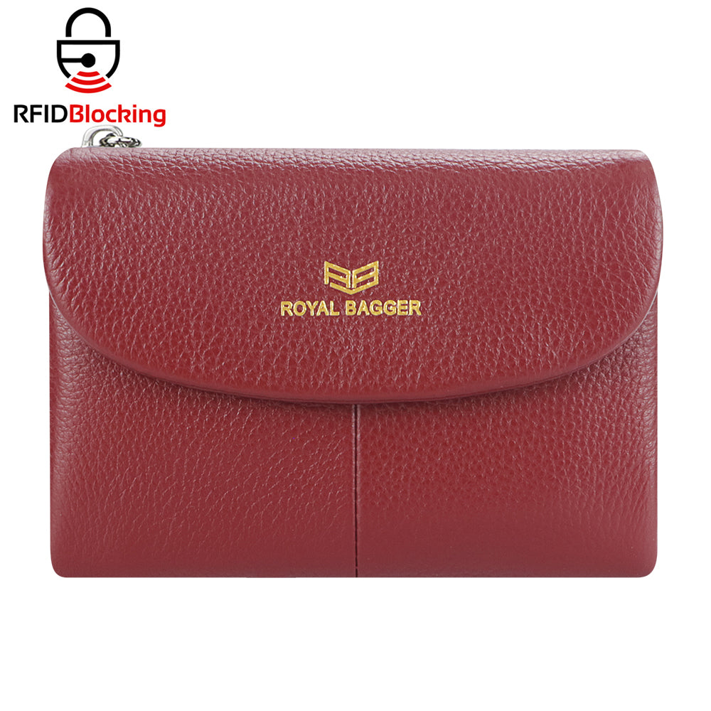 Royal Bagger RFID Blocking Women's Short Wallet Genuine Leather Multi-card Slots Card Holder Trifold Purse Magnetic Opening 2063