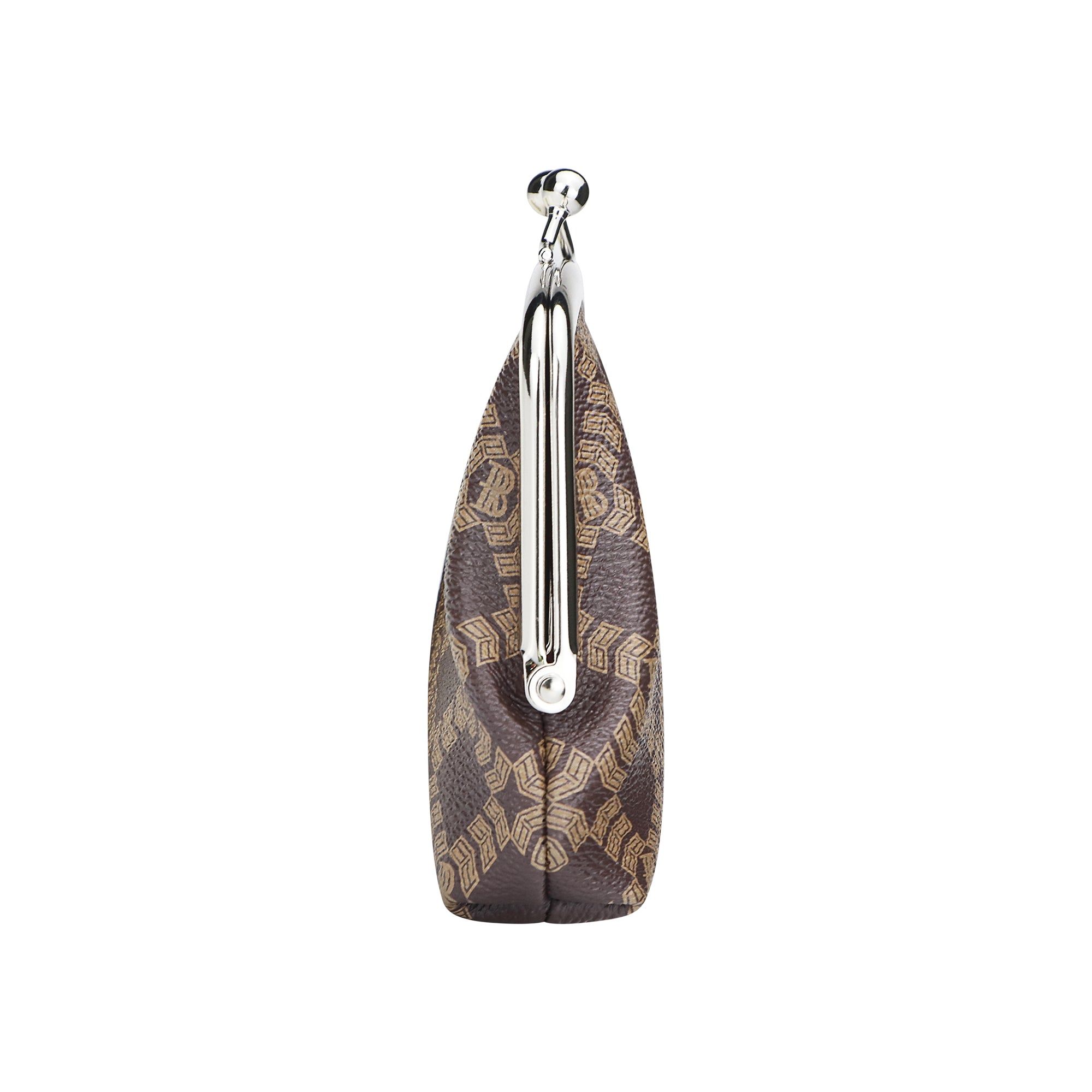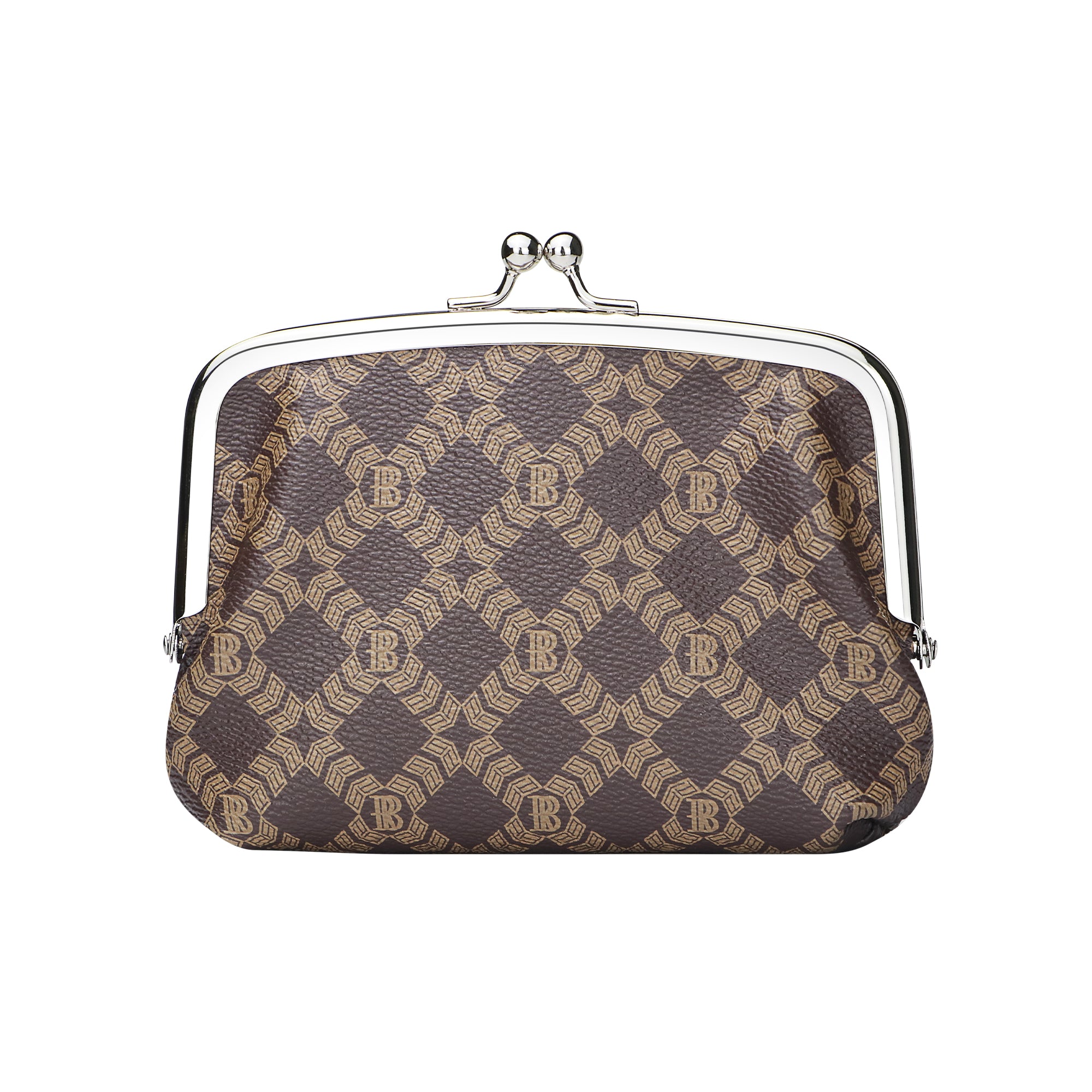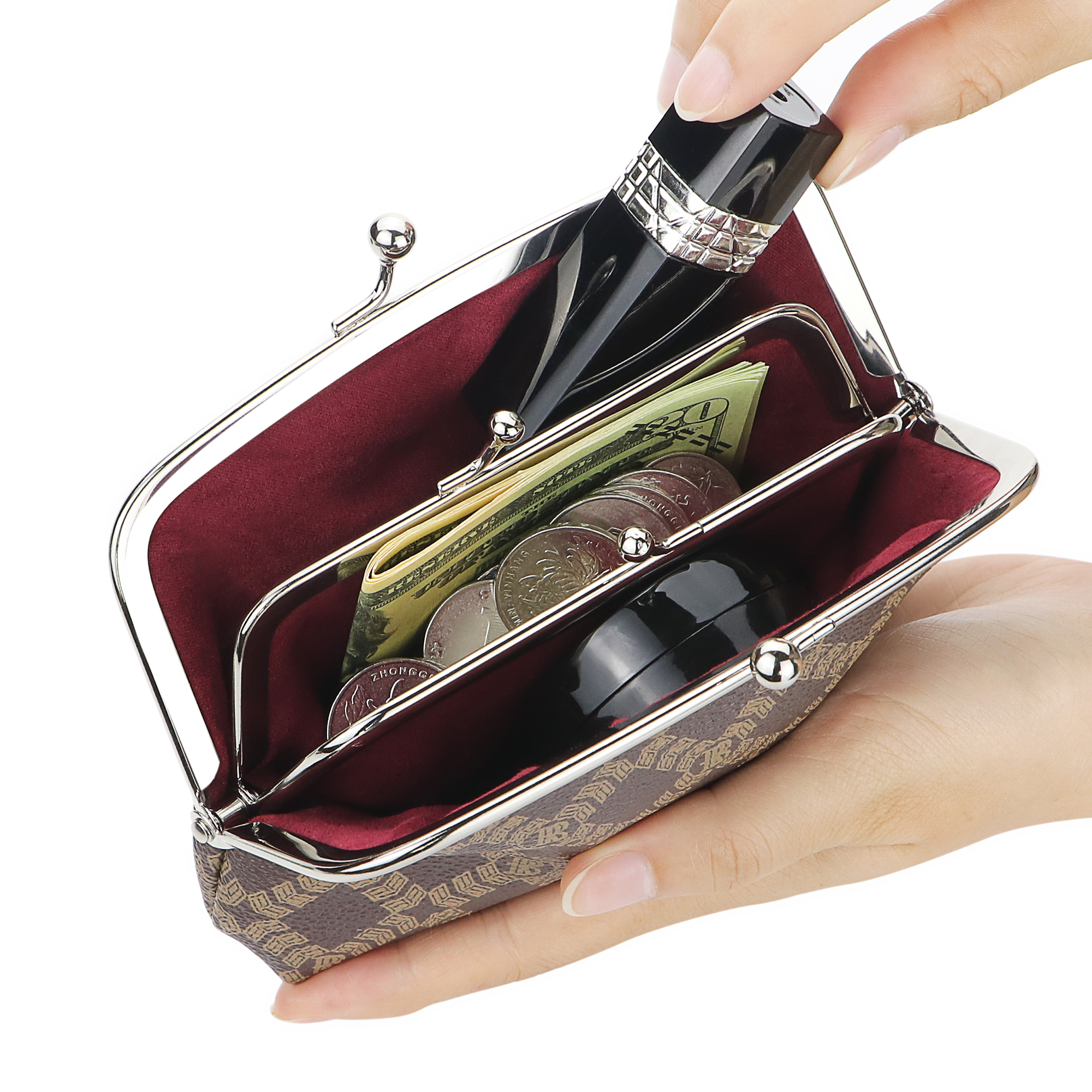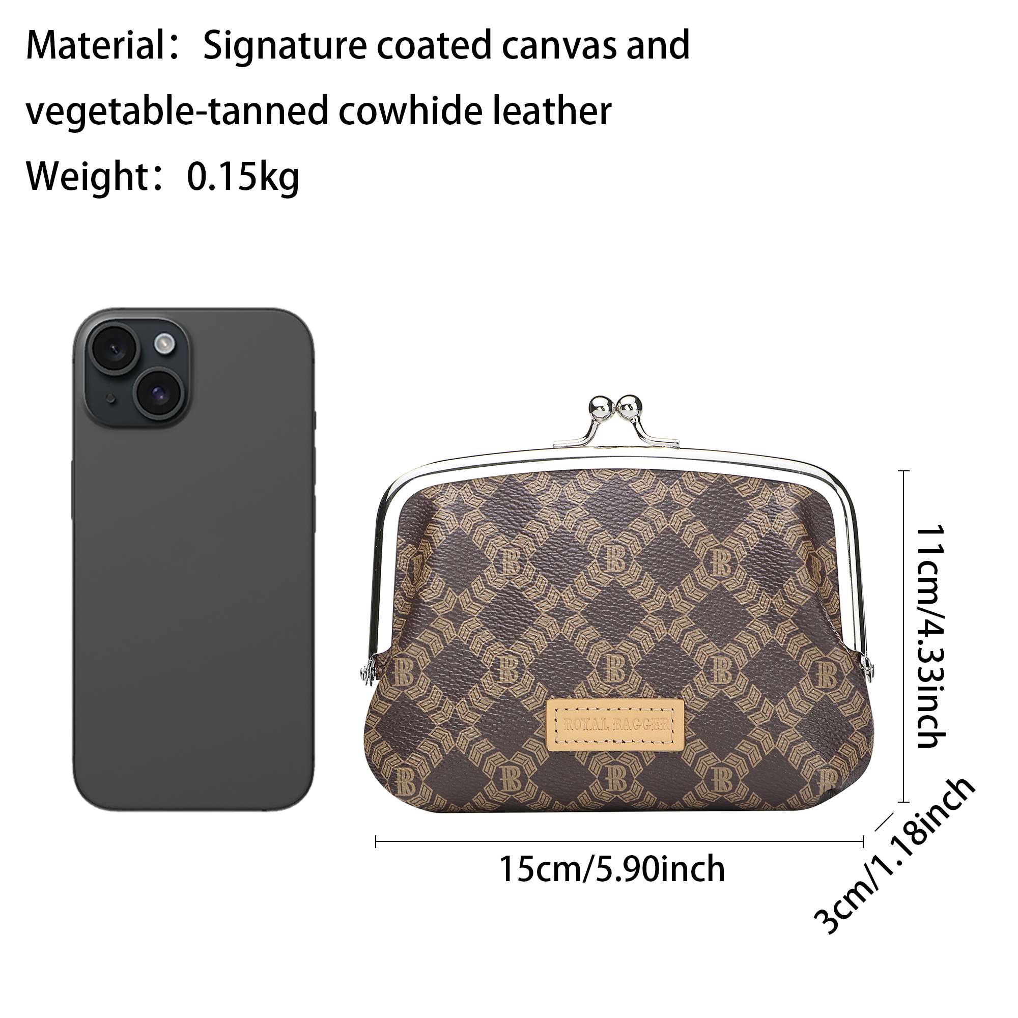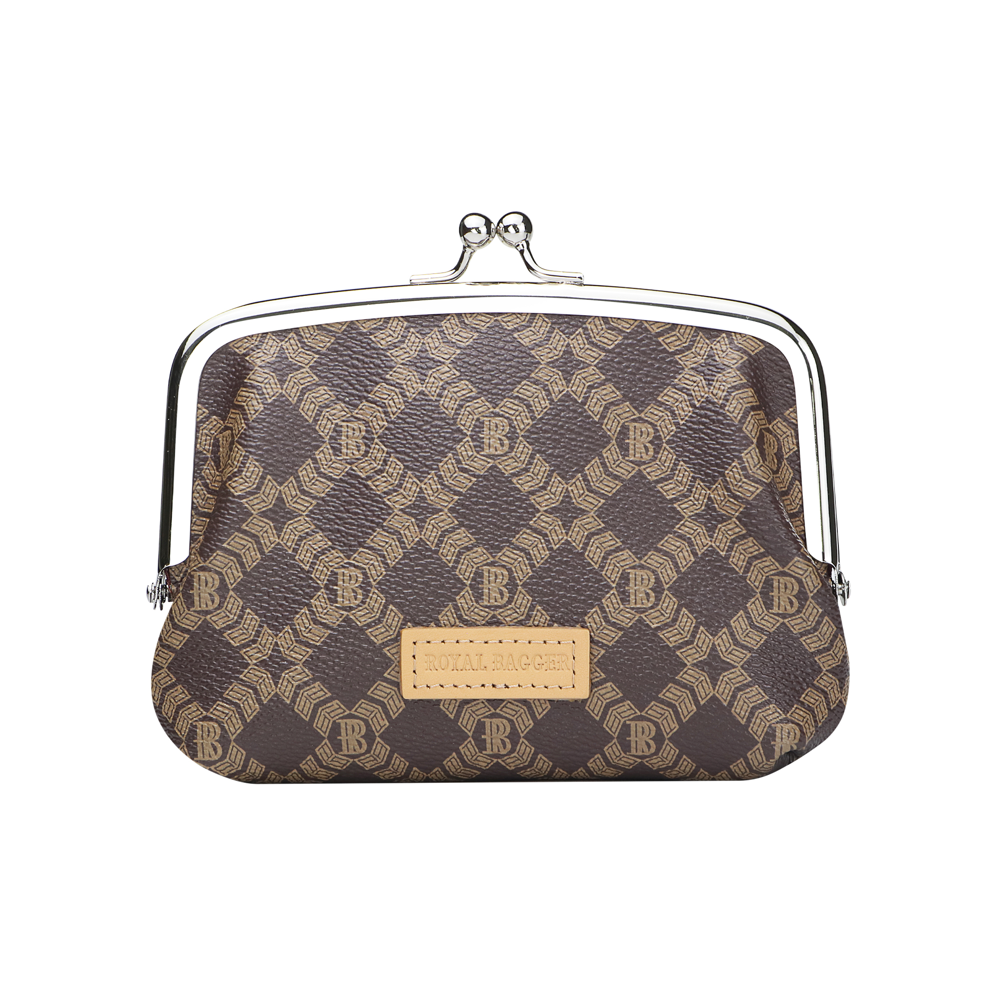 Royal Bagger RFID Coin Purses for Women, Fashion Kiss Lock Change Pouch, Double Clip Key Card Storage Bag, Signature Coated Canvas & Vegetable-Tanned Cowhide Leather 2858