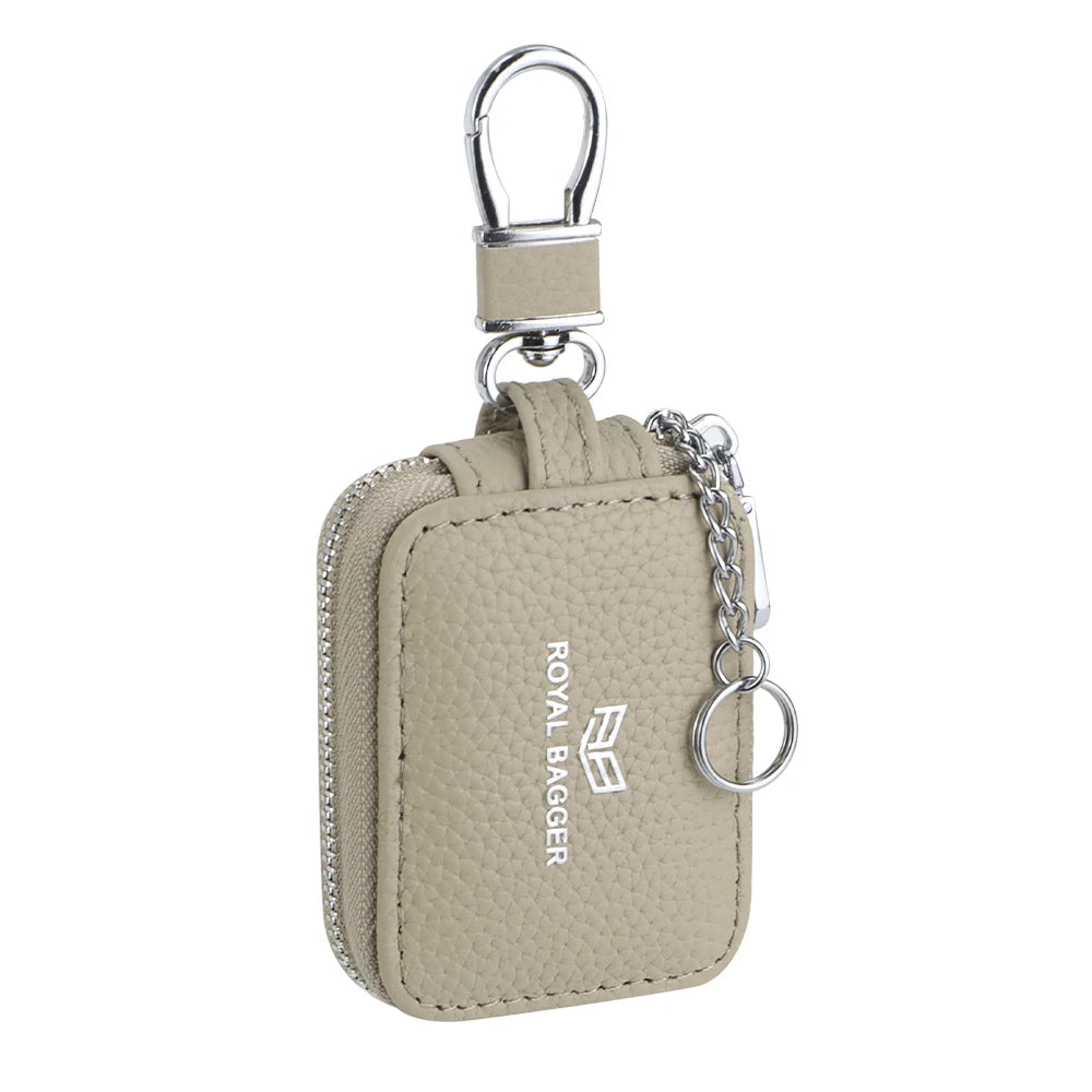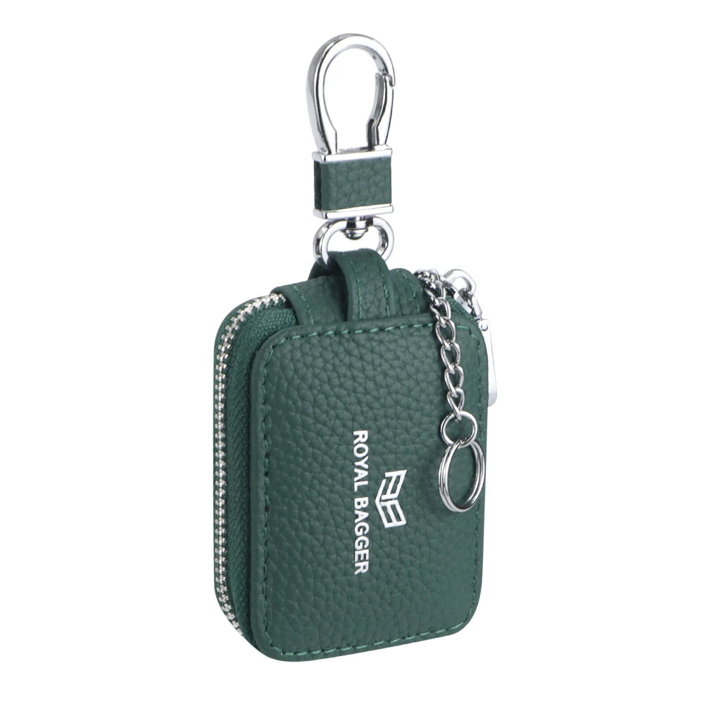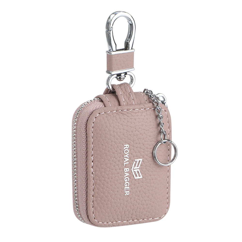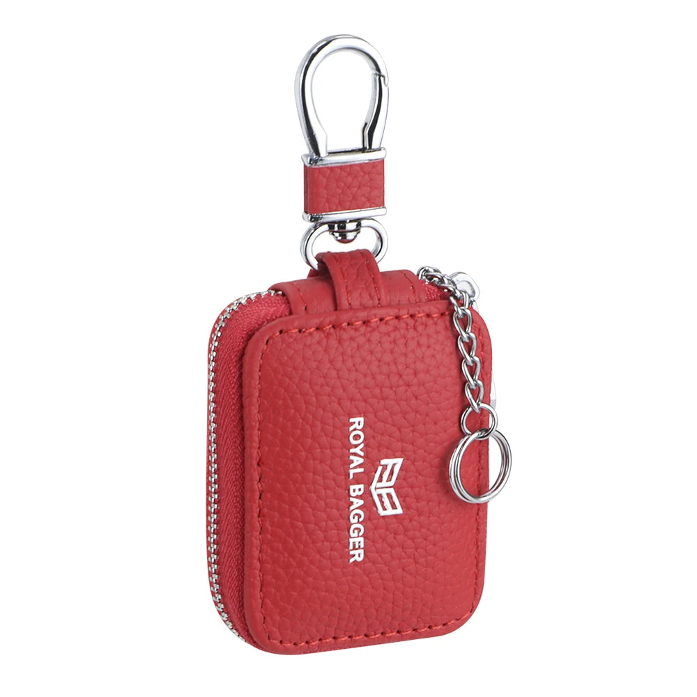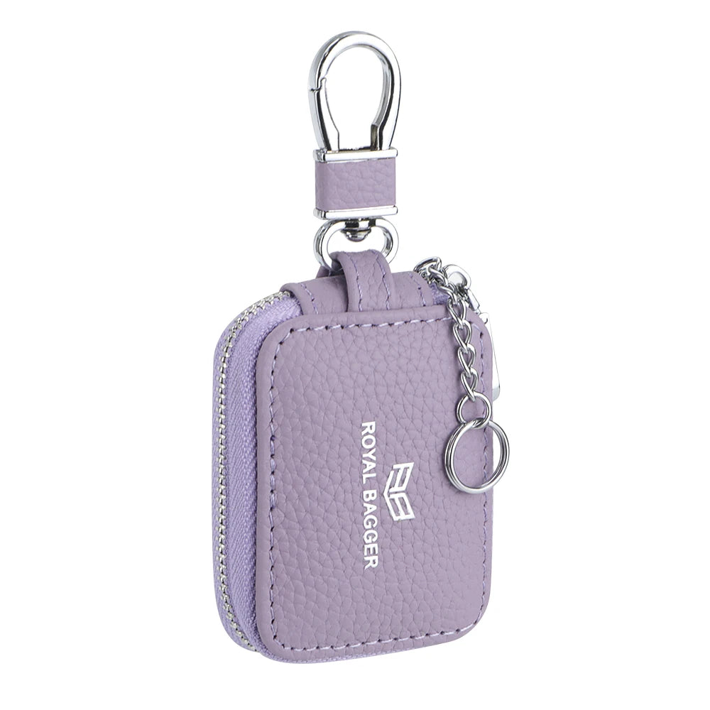 Royal Bagger Mini Portable Zipper Earphone Bags Genuine Leather Small Key Wallet with Keychain Fashion Simple Headphone Bag 2901