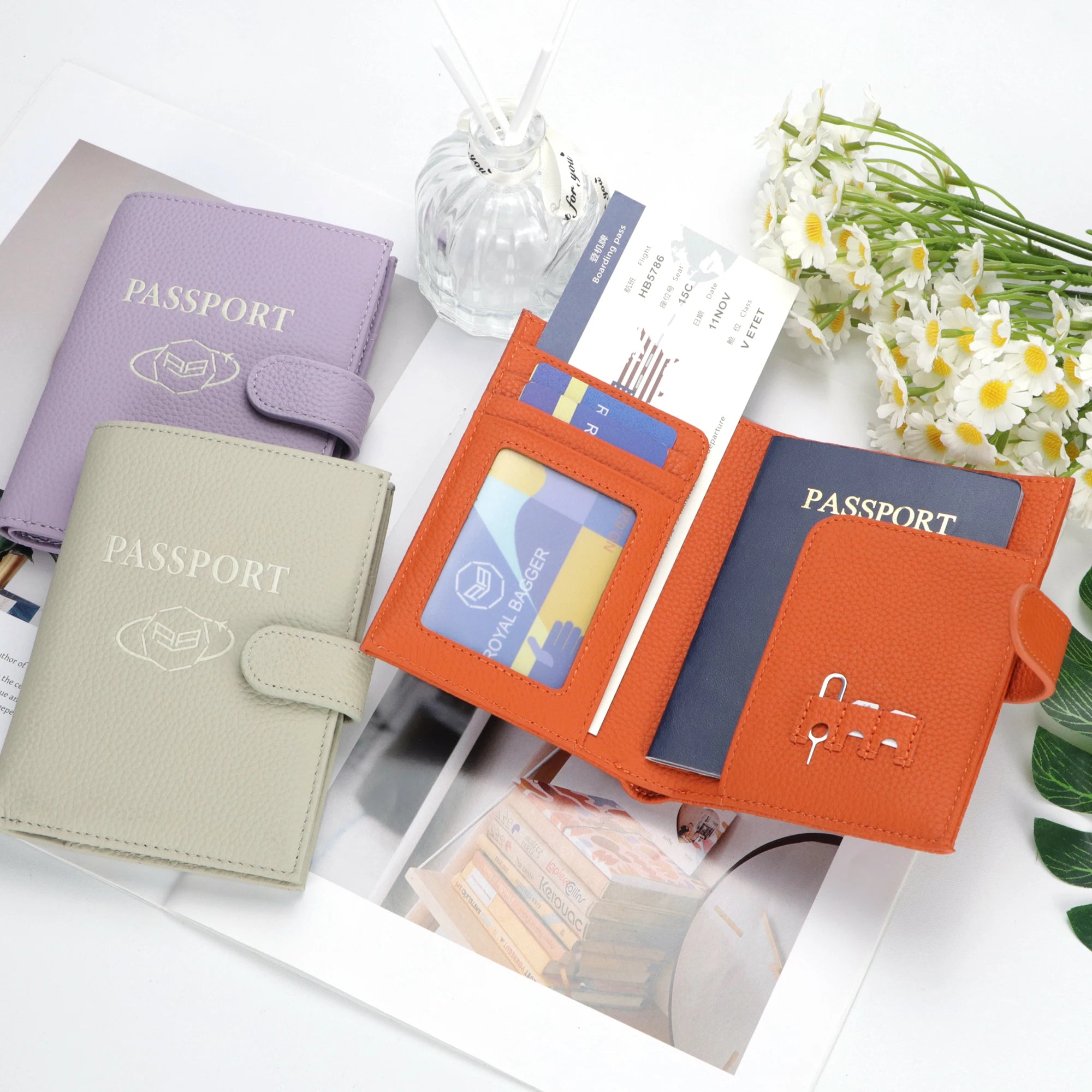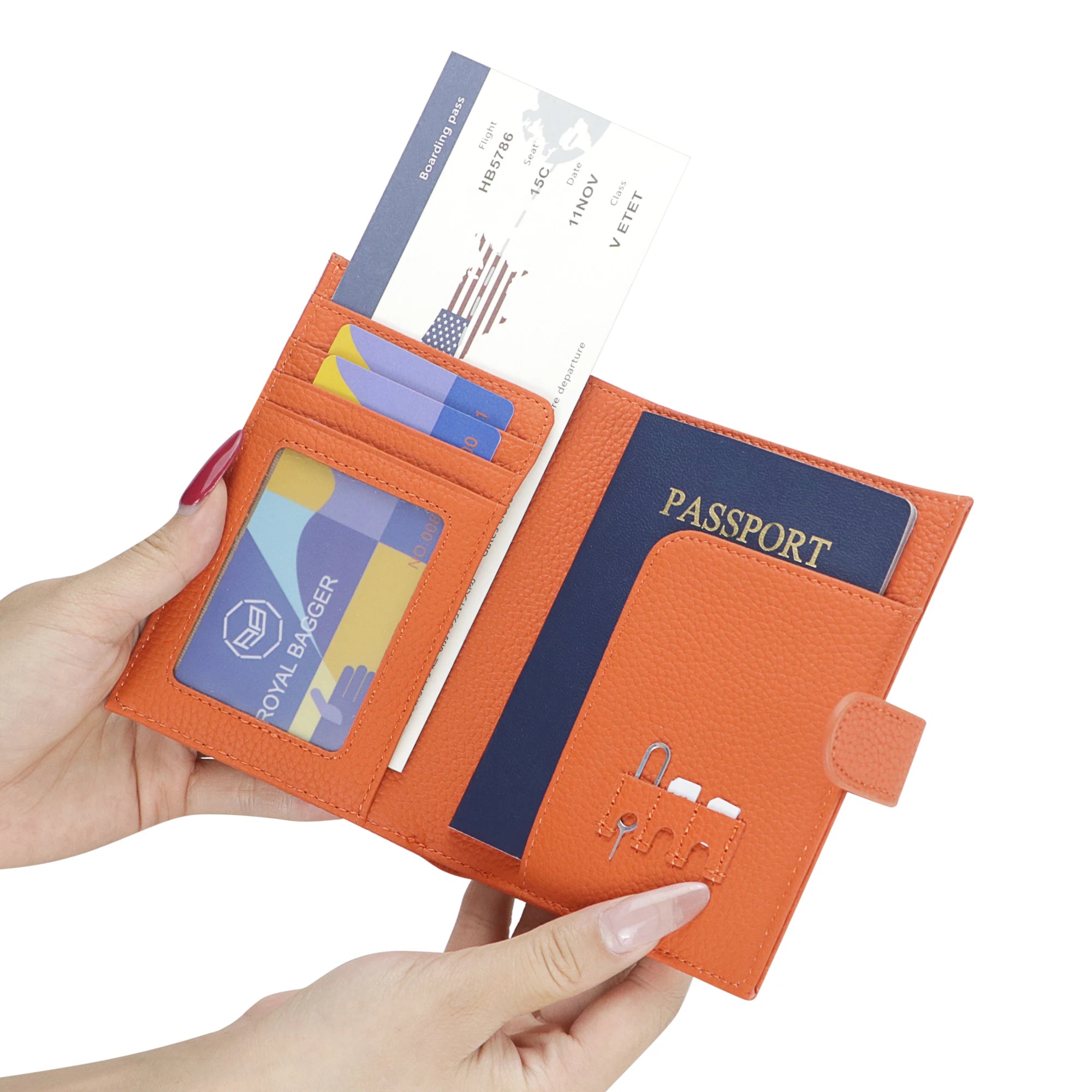 Royal Bagger RFID Genuine Leather Passport Wallet for Women, Casual Travel Wallets and Card Holder with SIM Card Pin Tool 3220