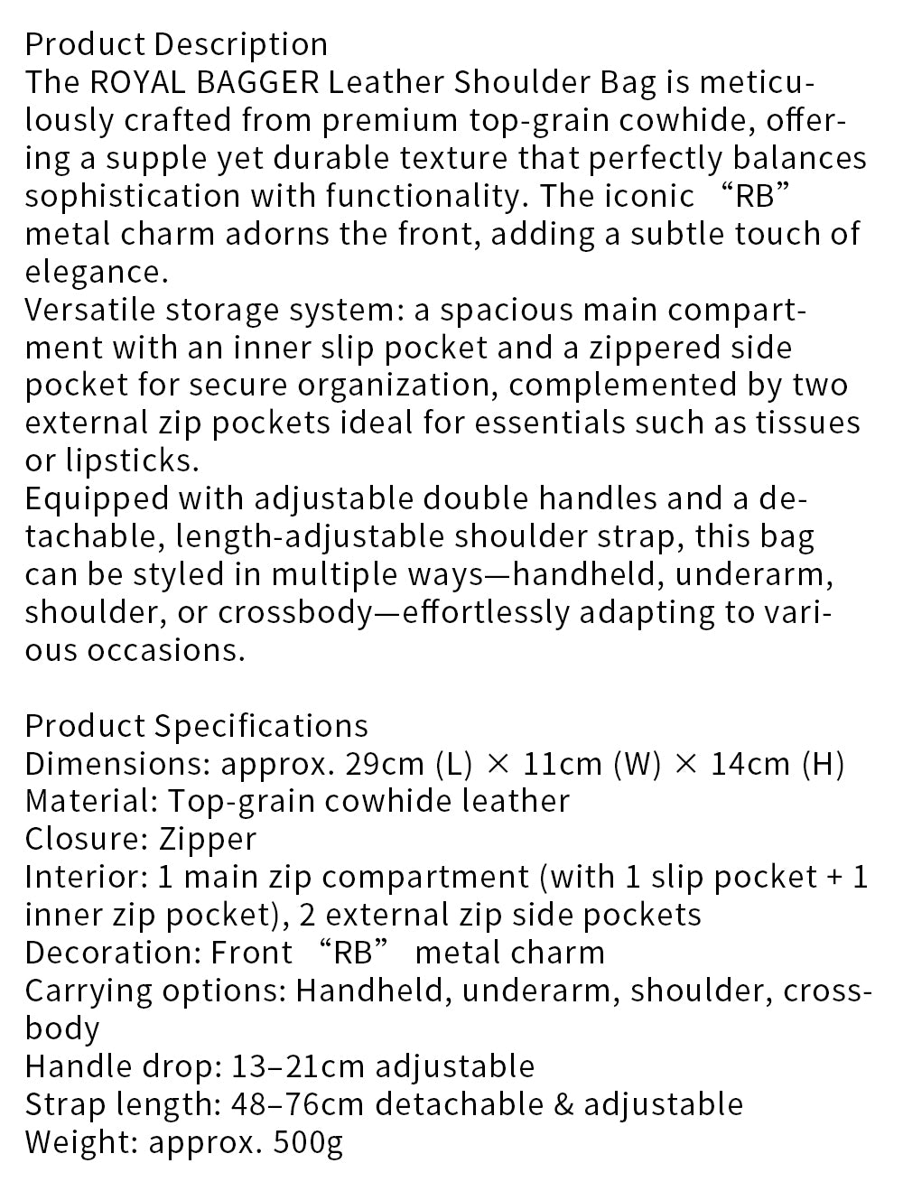 Royal Bagger Crossbody Bags for Women, Genuine Soft Cow Leather Shoulder Purse, Elegant Handbag with Adjustable Strap 3261