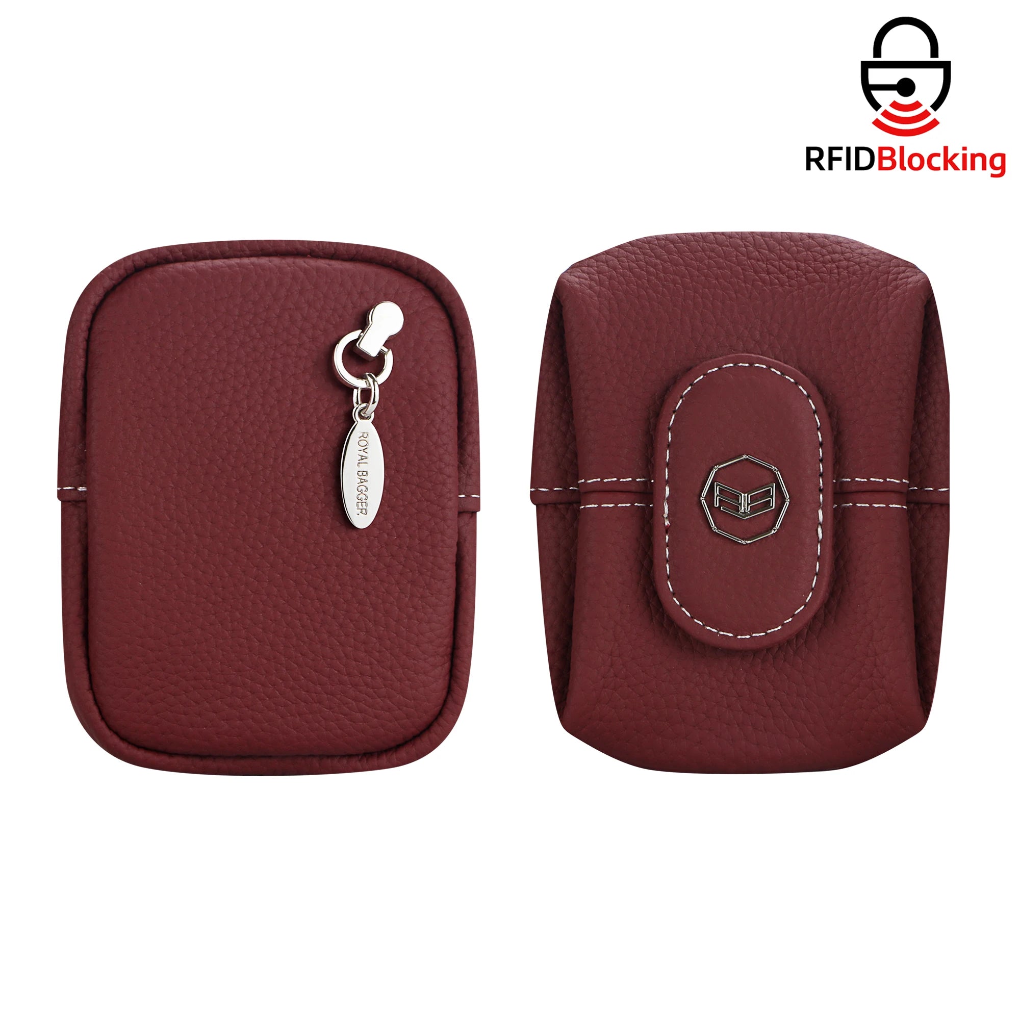 Royal Bagger RFID Mini Genuine Leather Women's Coin Purse - Solid Color Buckle Pouch for Keys, Earphones & Daily Essentials 3603