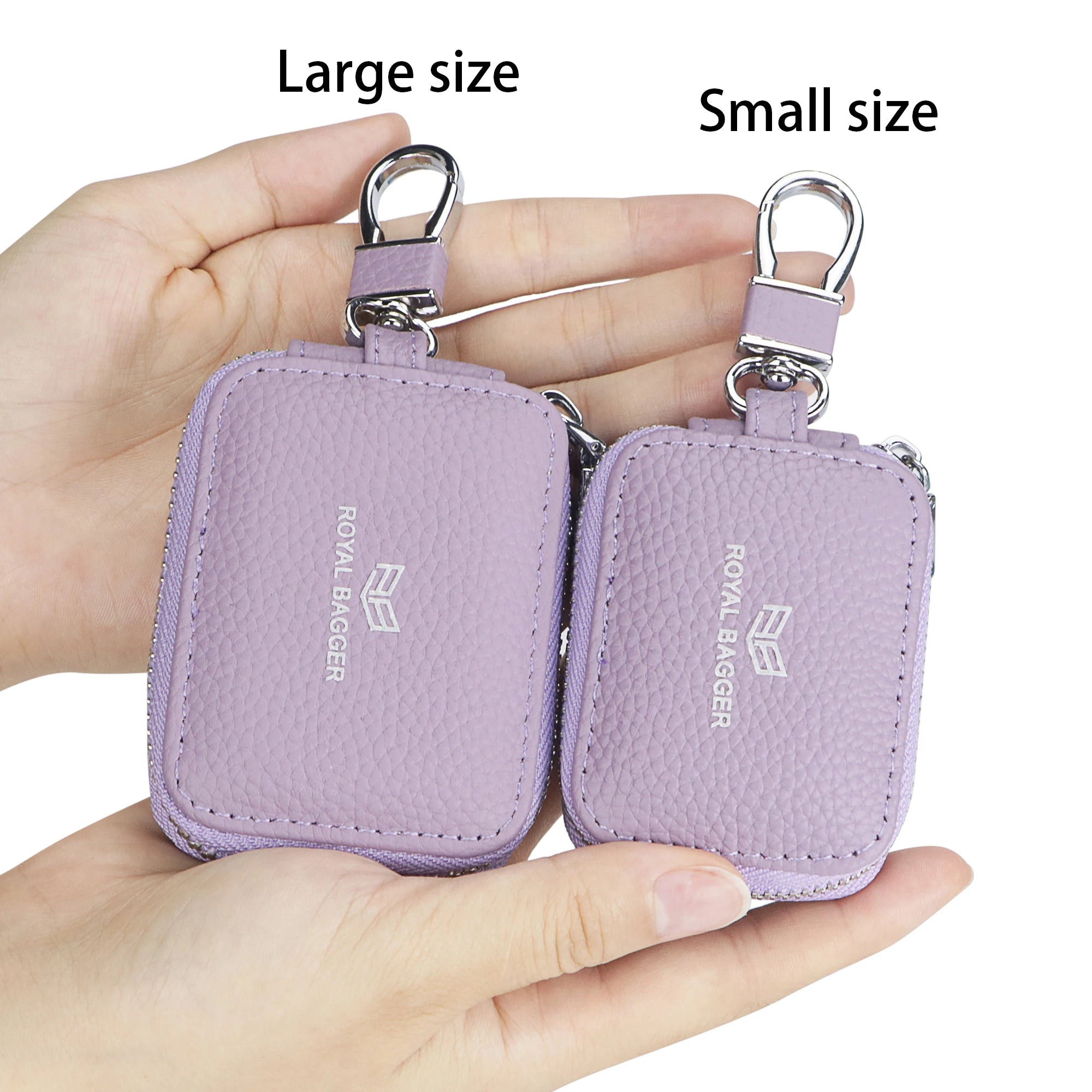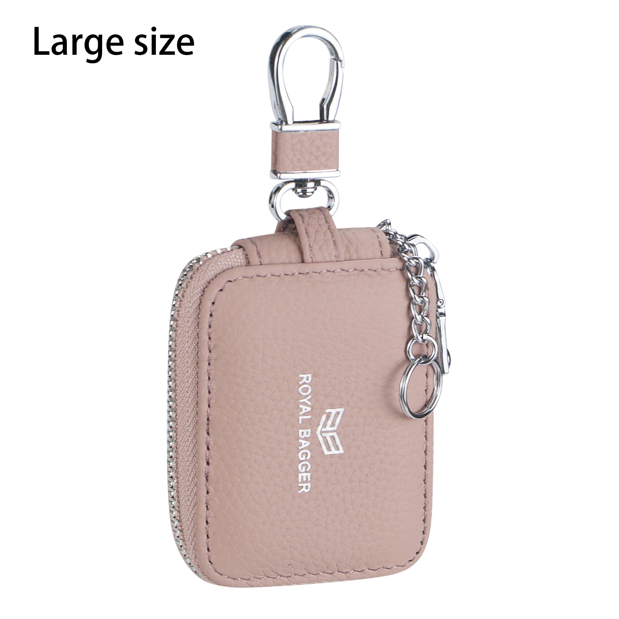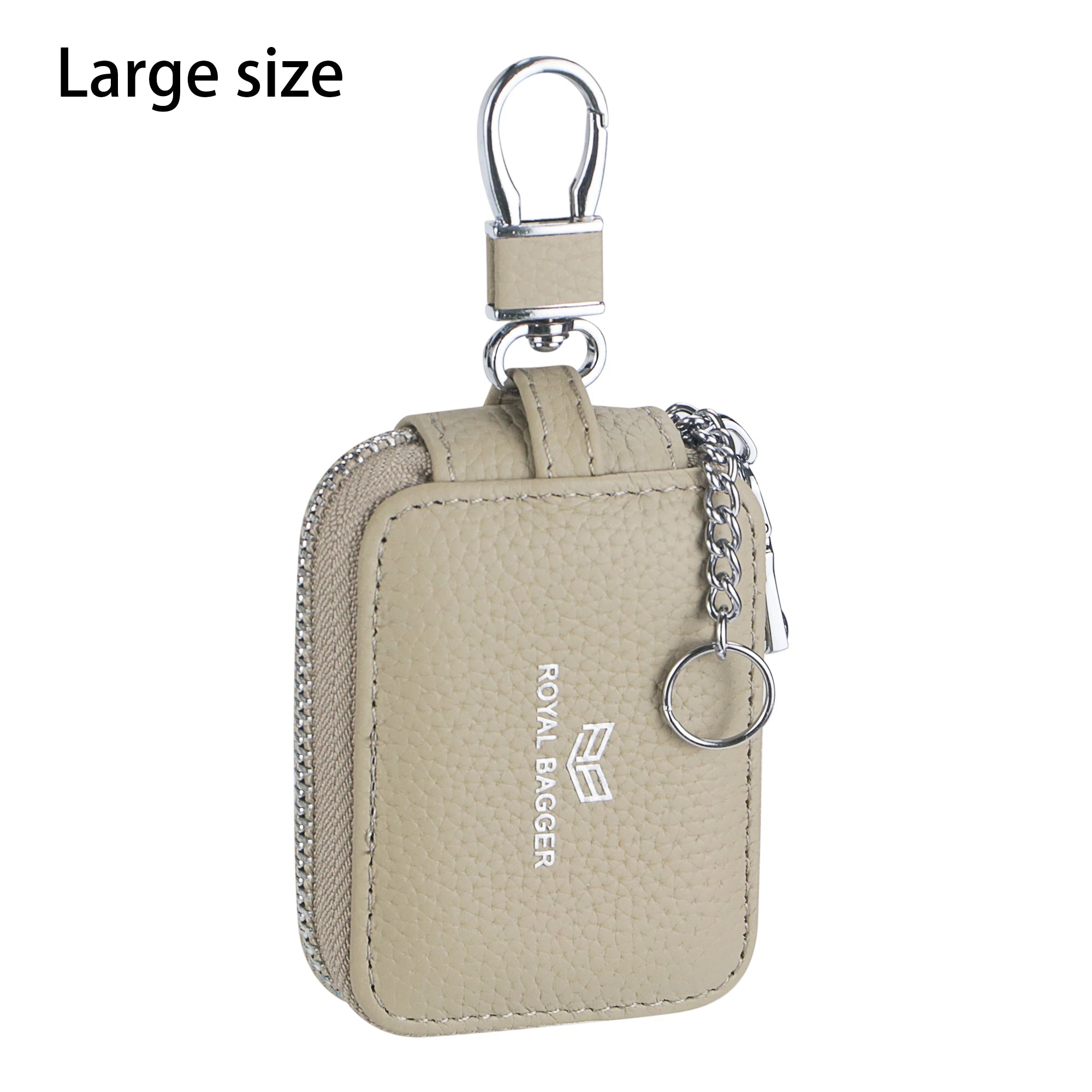 Royal Bagger Mini Earphone Bag Genuine Leather Zipper Key Wallet with Keychain, Portable Headphone Case for Men & Women 3901