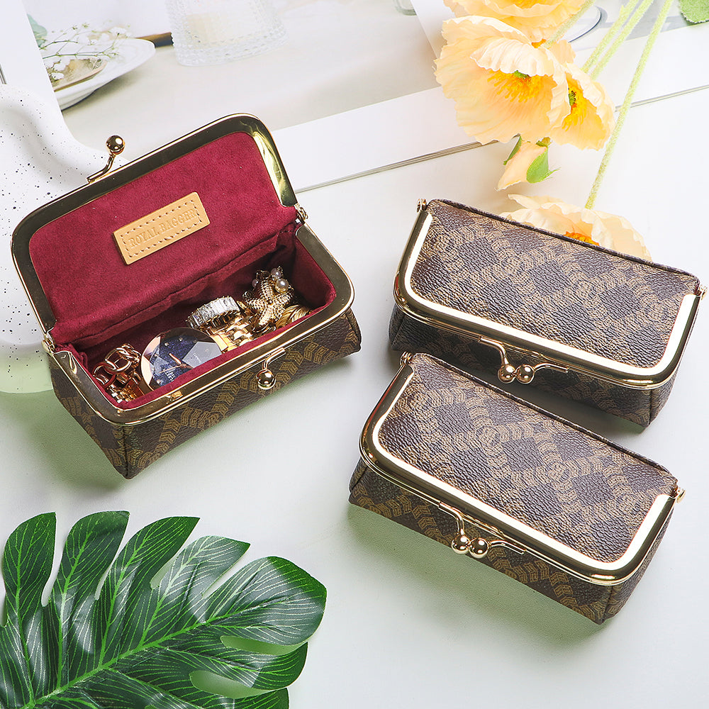 Royal Bagger Mini Jewelry Box – RFID Coated Canvas & Leather Organizer for Rings, Necklaces & Earrings, Women's Kiss Lock Purse 5125