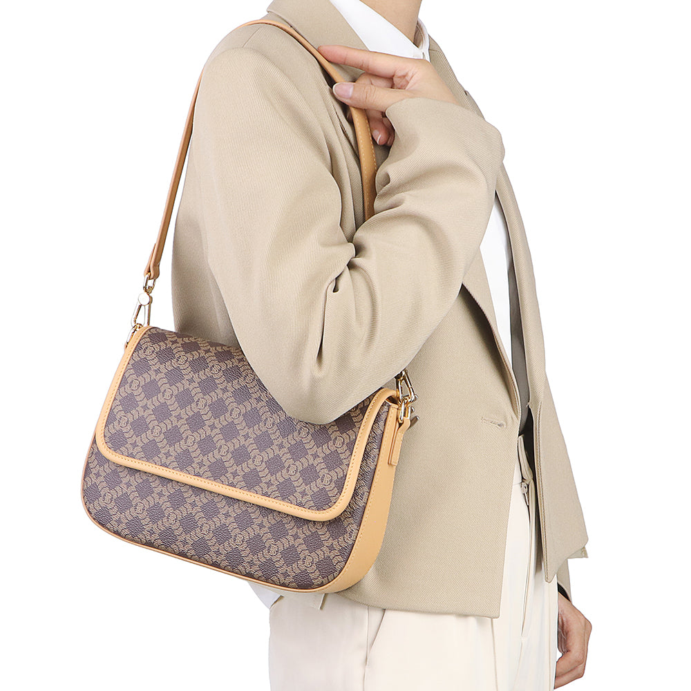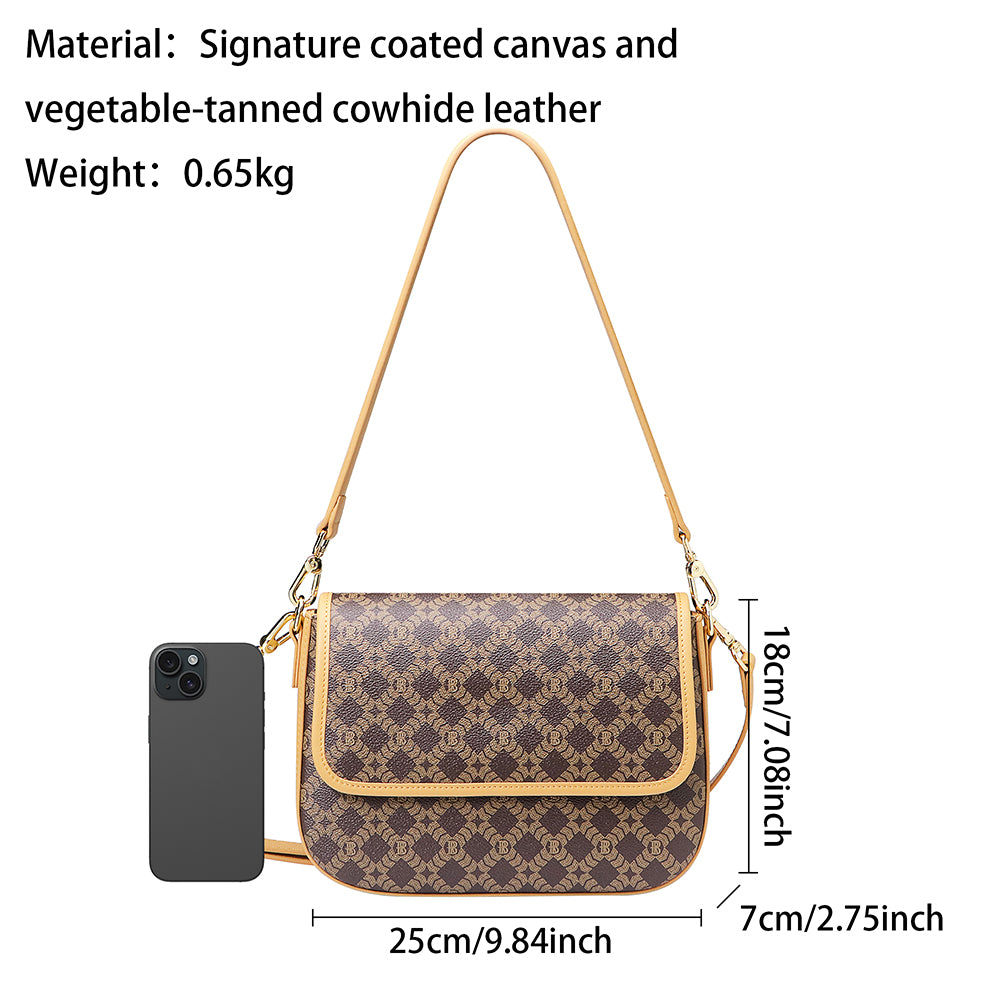 Royal Bagger Retro Crossbody Box Bag for Women, Signature Canvas & Leather, Elegant Compact Shoulder Purse 5245