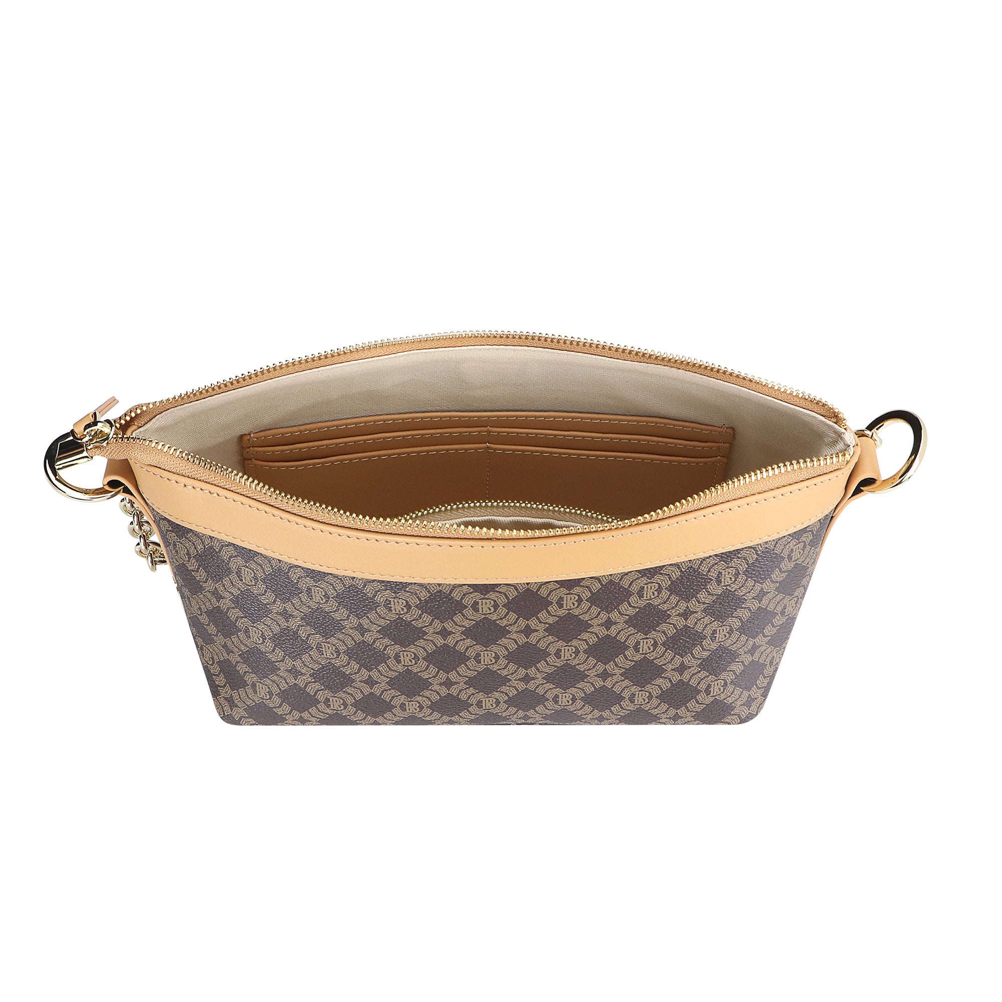 Designed with a leather-woven metal chain and an adjustable strap, it can be worn on the shoulder or carried by hand for versatile styling options. The front features the signature “RB” metal logo, adding a touch of brand elegance, while a smooth top zipper ensures your belongings stay secure.