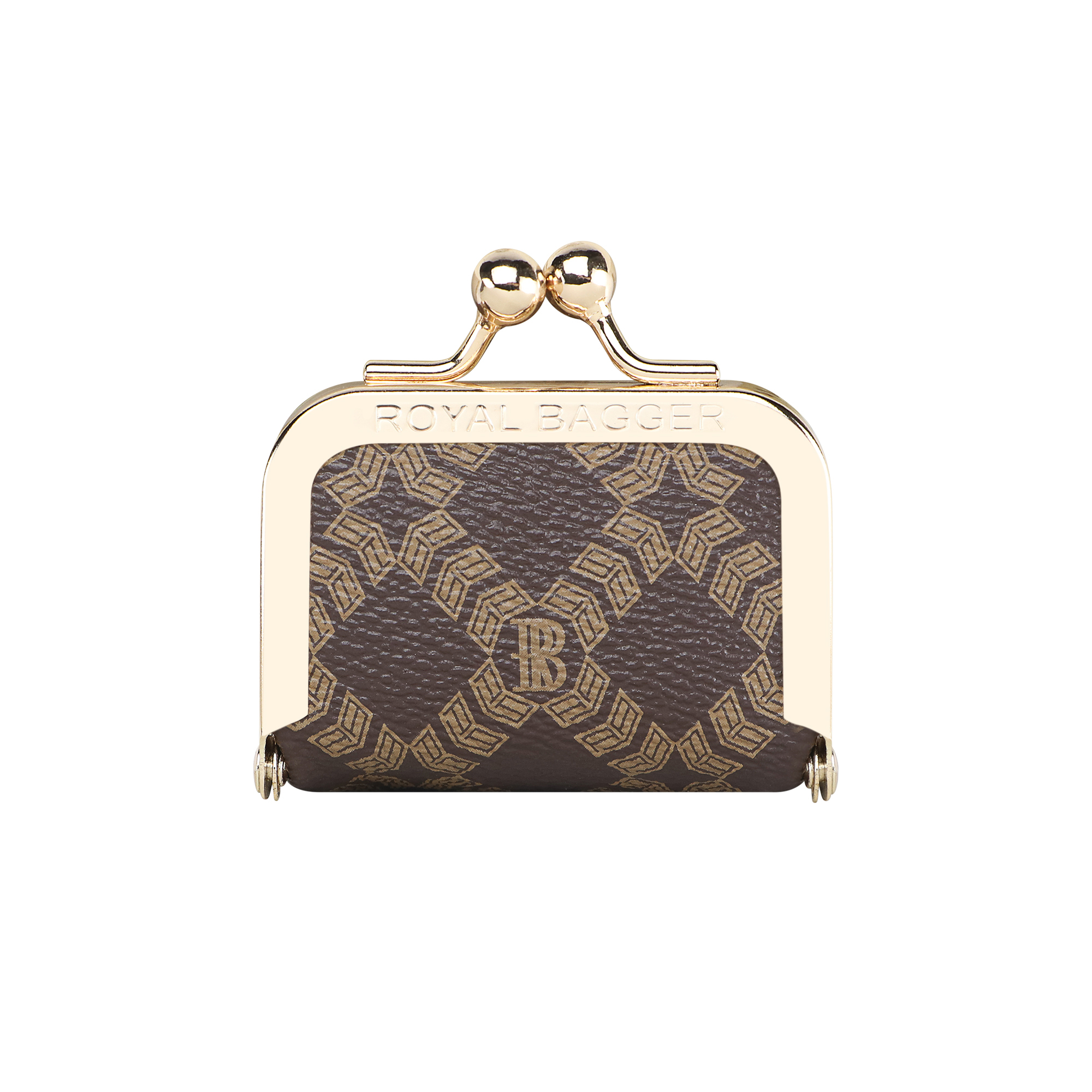 Royal Bagger Women's Mini Jewelry Box & Coin Purse – Signature Coated Canvas & Vegetable-Tanned Cowhide Leather, Solid Color Kiss Lock Change Pouch, Casual Small Storage Bag 5894